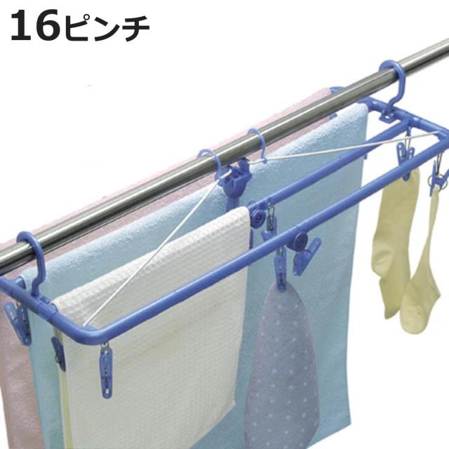 洗濯ハンガー バスタオルハンガー 16ピンチ ( バスタオル ハンガー タオルハンガー タオル干し ピンチ 低竿対応 角ハンガー 折りたたみ 洗濯物干し ベランダ 洗濯ピンチ 洗濯 )