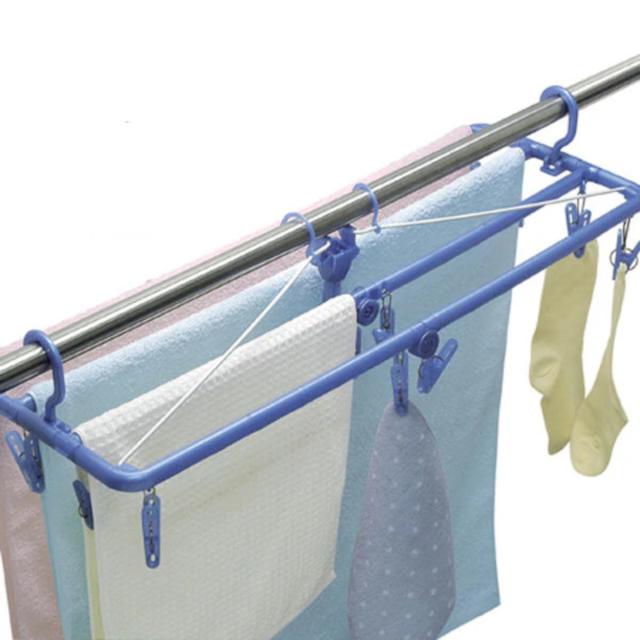 竿に直接掛けて干すより省スペースにバスタオルを干せます。しかも16個のピンチ付きなので、小物類を一緒に干すのにも便利です。