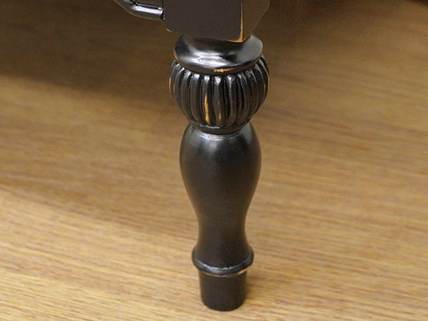 ブラックを基調としているので暗くならないよう、丸みとくびれがポイントのろくろ脚で可愛らしさをプラスしています。※手前の脚のみの加工です。