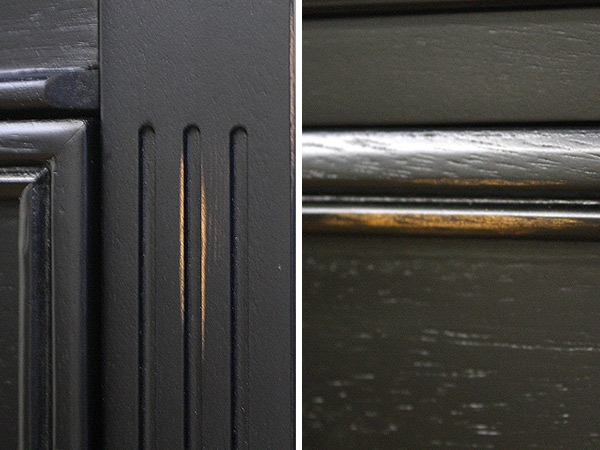 何年も使い込んだように見せるシャビー加工を施しています。ヴィンテージ感が増すことで高級感もアップします。