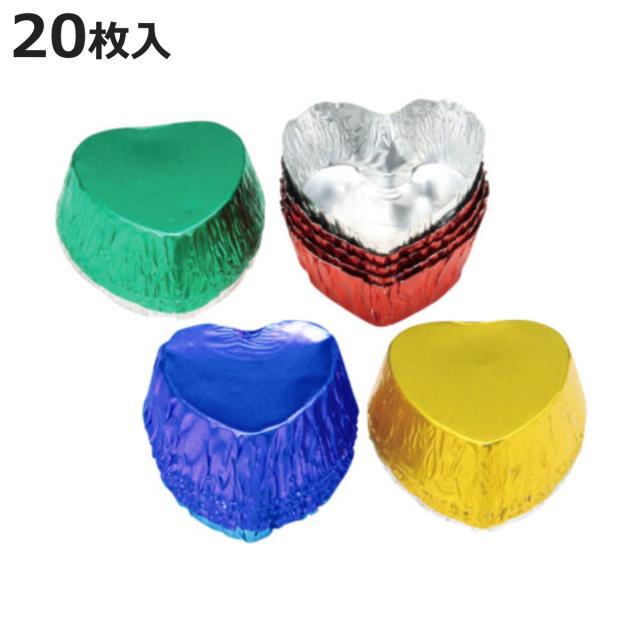 アルミ箔カップ チョコレート型 チョコカップ ハート 5色 20枚入 ( アルミケース アルミ箔型 チョコレートカップ 製菓グッズ アルミ製 お菓子作り バレンタイン プレゼント )