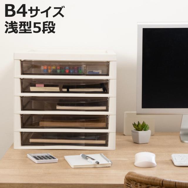 レターケース B4対応 浅型 5段 アプロス 幅32.3×奥行40.6×高さ30.8cm ( 書類 収納ケース 卓上収納 多段引出し ストッパー付き B4 日本製 整理整頓 棚 整理 収納ボックス 収納 透明 ケース コピー用紙 小物置き )