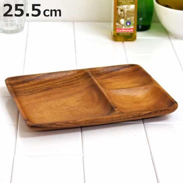 アカシア プレート 25.5cm 仕切り 木製 ( ランチプレート 仕切り皿 木製プレート お皿 皿 木製食器 スクエア 角 3つ仕切り ワンプレート ランチ キッチン用品 インテリア 北欧風 おしゃれ )