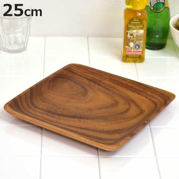 アカシア プレート 25cm 角皿 木製 ( 木製プレート お皿 皿 盛り皿 木製食器 角 スクエア メイン料理 大皿料理 キッチン用品 インテリア お盆 トレー 北欧風 おしゃれ )