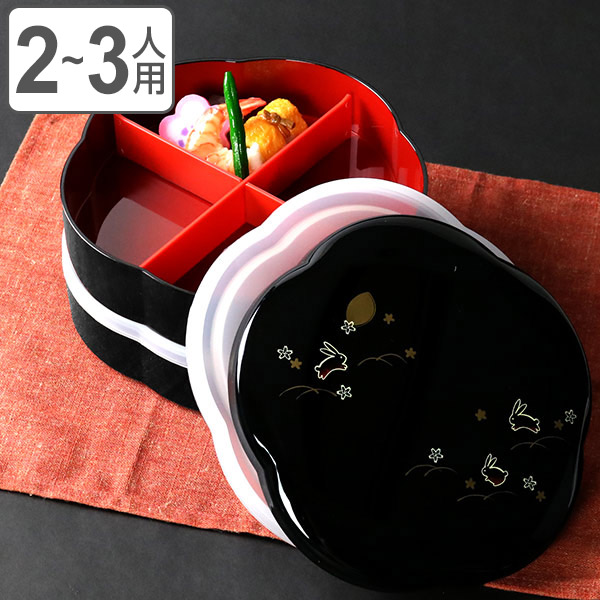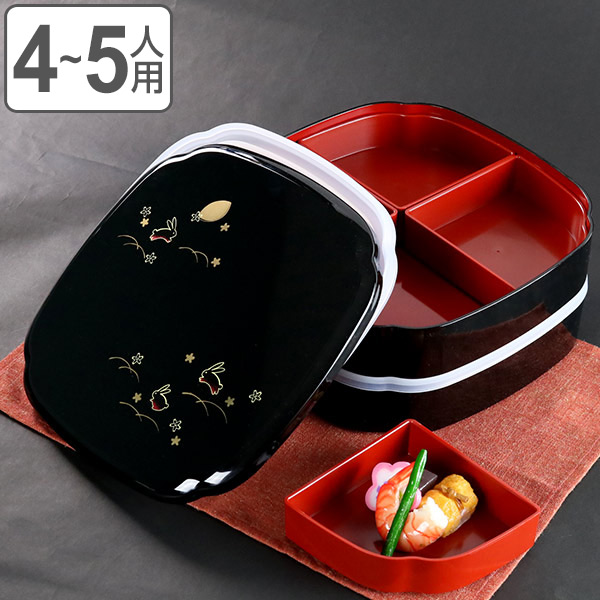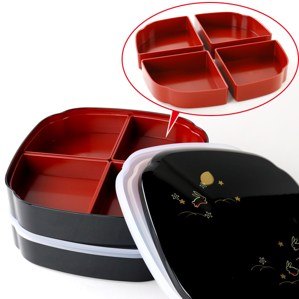 お弁当箱 8.0木瓜オードブル 夢うさぎ シール蓋付 4500ml ( お重 和柄 オードブル ファミリーランチボックス 日本製 仕切り付き うさぎ柄 二段 4〜5人用 お正月 シール蓋 和風 蓋付き 御重 行楽 うさぎ 弁当箱 仕切り付 )