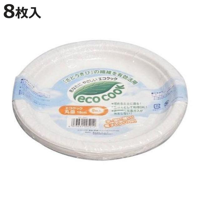 エコクック 丸皿 18cm 8枚入 ( 紙容器 ボウル 使い捨て容器 業務用 使い捨て 容器 スープ サラダ 小さめ 硬い 丈夫 紙 プレート 使い捨てプレート 取り皿 皿 簡易食器 )