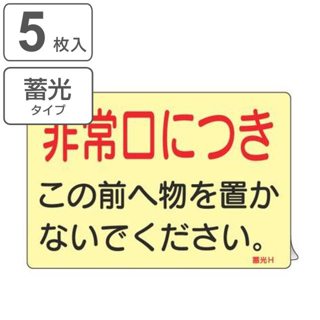 ドアノブ標示ステッカー 「 非常口につき この前へ物を置かないでください。 」 蓄光タイプ 5枚入 ( 蓄光シール 夜光 標示シール 安全用品 ステッカー 標識 非常口 注意 注意喚起 蓄光 光る 標示 表示 喚起 促す 安全対策 )