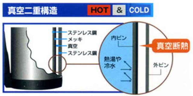 外ビンと内ビンの間に真空の壁を作って、熱を外に逃がさない構造です。熱源を必要としないのでエコの点からもお勧めです。