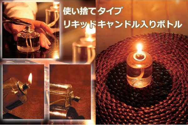 ●プラスティック製のボトルにリキッドキャンドルと芯糸がセットされた使い捨てタイプです。