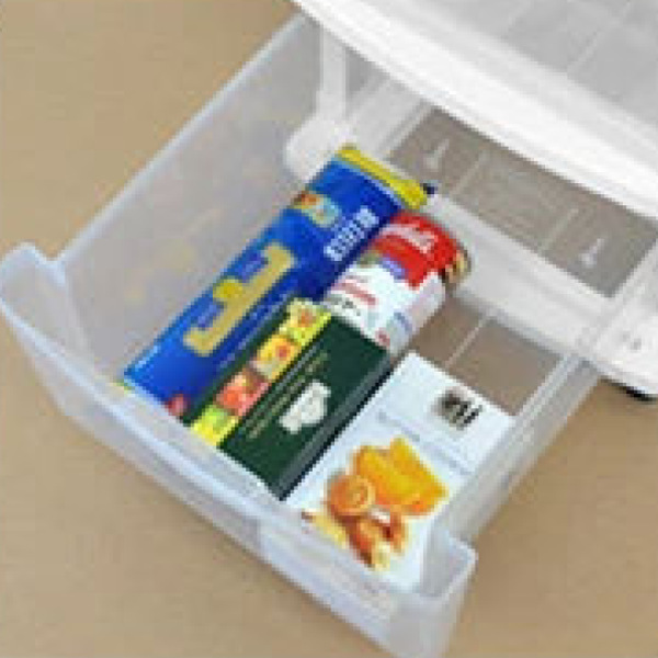 クリアタイプの引出しなので、しまったものをすぐに見つけられるので、迷わず出し入れできます。