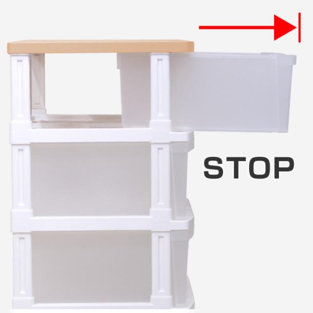 引出しにストッパーが付いているため、最大まで引き出しても抜け落ちる心配がありません。