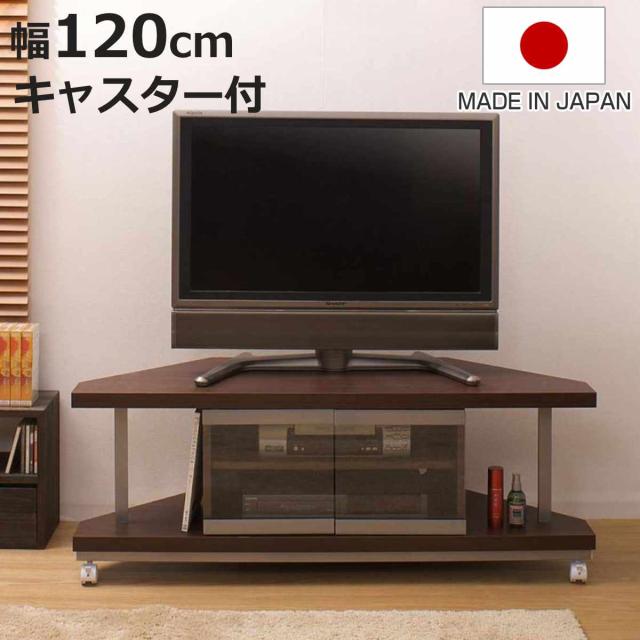 テレビ台 コーナータイプ 幅120cm 日本製 ( AVボード テレビラック TV台 ローボード 可動棚 コーナー型 TVラック TVボード 木製 ガラス扉 キャスター )