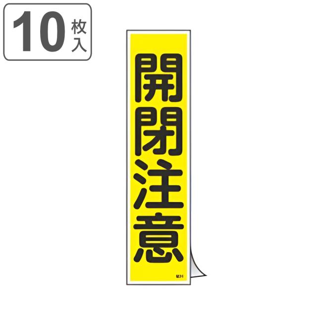 ステッカー標識 「 開閉注意 」 短冊型 36×9cm 10枚組 ( 標示シール 安全用品 ステッカー 標識 開閉 注意 注意喚起 標示 表示 喚起 促す 安全対策 安全 対策 グッズ )
