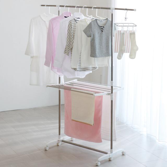 洗濯物が上段下段で干渉せずに干せる伸縮式の物干しスタンド