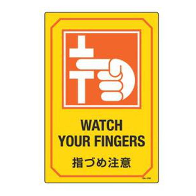 サイン標識 英文字入り 「 指づめ注意 WATCH YOUR FINGERS 」 ( 標示プレート 看板 英語 英字 英語表記 標識 プレート プレート標識 表示 標示 指づめ 注意 指詰め ゆび イラスト入り 安全用品 )