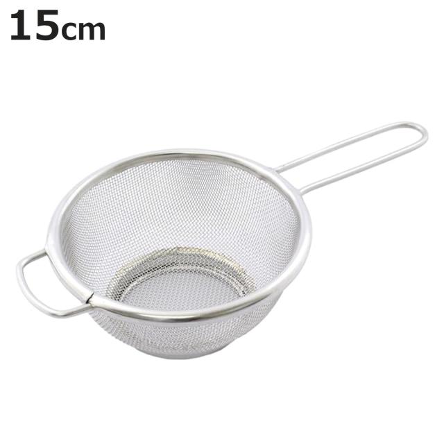 片手ざる 15cm 底付きストレーナー 日本製 ( ざる ザル 取っ手付き 片手ザル ステンレスザル ストレーナー 15センチ 調理用ザル ステンレスざる 水切り 湯切り 脚付き メッシュ 下ごしらえ )