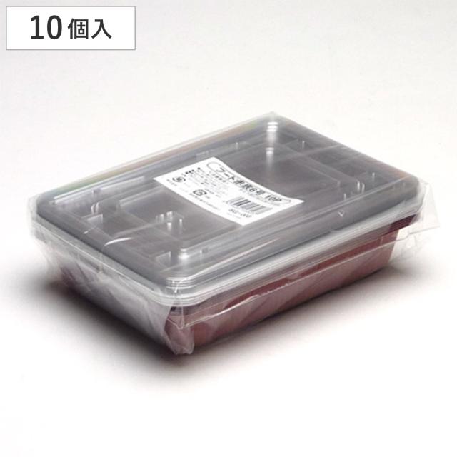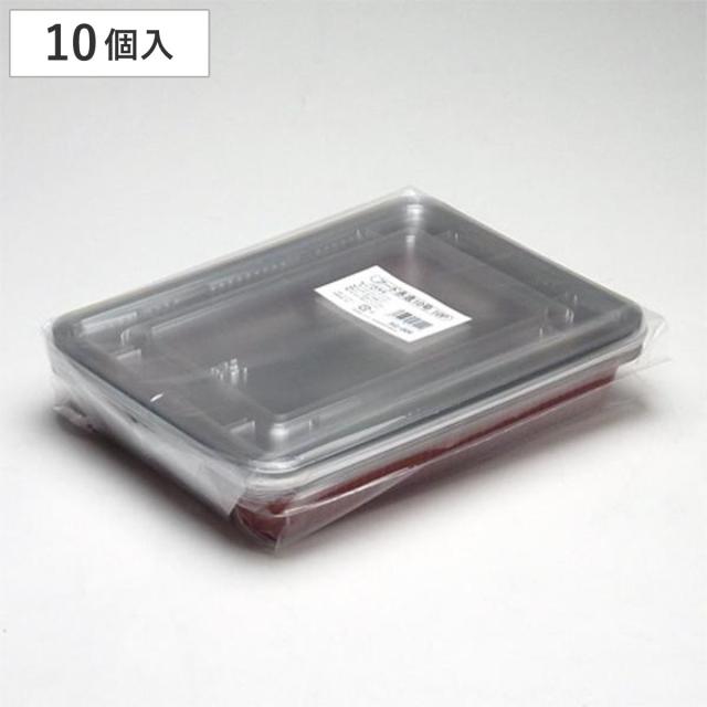 フードケース 赤底8号 10個入 ( プラスチック容器 パック 容器 使い捨て 弁当箱 角型 日本製 使い捨てパック プラ容器 クリア お弁当箱 ランチボックス 蓋付き 蓋 ふた 10枚 10個 )