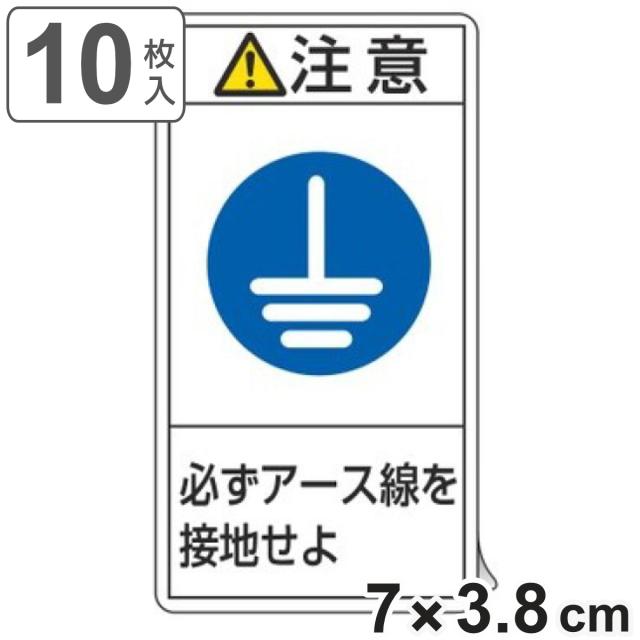 PL警告表示ラベル 「 注意 必ずアース線を接地せよ 」 小 7×3.8cm タテ型 10枚組 ( ステッカー 10枚 表示シール 警告 表示 表示シート 縦 7×3.8センチ PL法対策 指示 注意喚起 喚起 標示 看板 安全用品 アース線 接地 マーク )