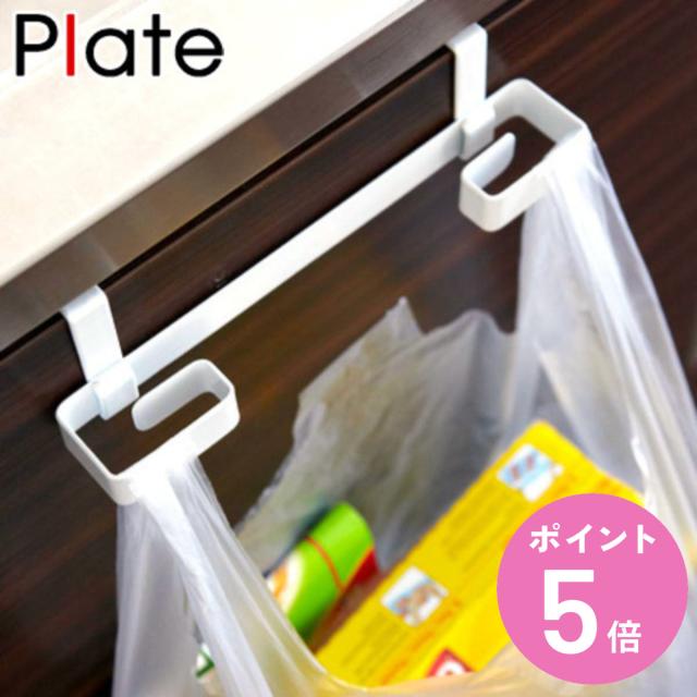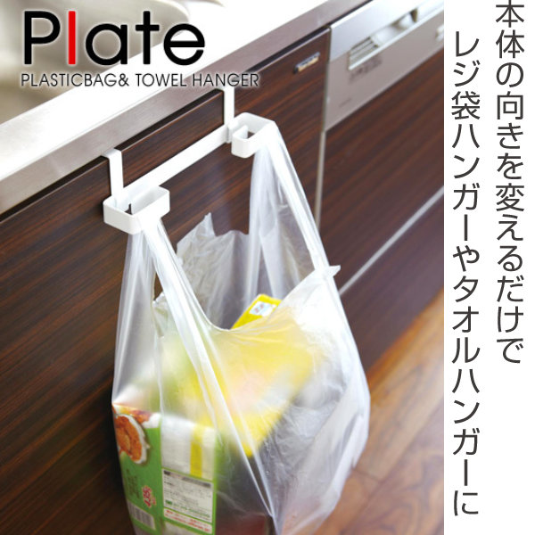 レジ袋&タオルハンガー ポリ袋ハンガー プレート Plate ( タオル掛け レジ袋ホルダー レジ袋掛け 山崎実業 キッチン 引っ掛け式 タオルリング 分別ゴミ箱 ダストボックス )