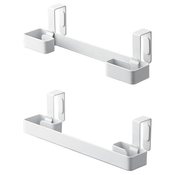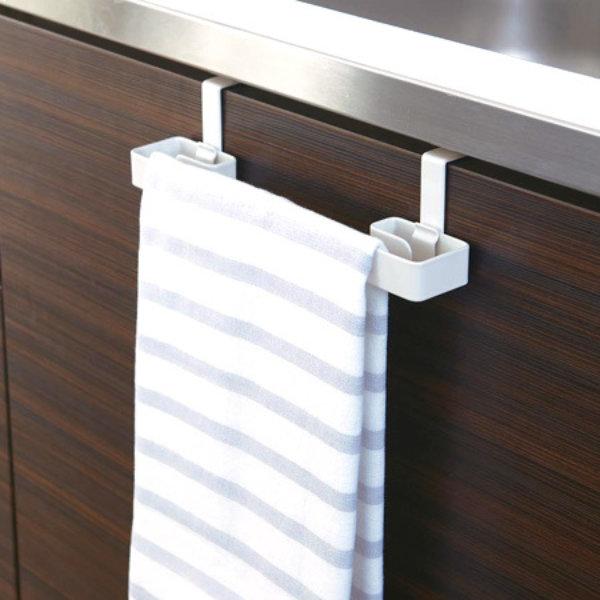 シンク下戸棚の扉に掛けるだけで簡単に設置ができます。ポリ袋を引っ掛けてゴミ入れとして使用したり、タオルハンガーにしたりとあると便利な一品です。取っ手を含まない幅約23cm以上、厚み約1.4〜2cmまでの扉に使用できます。