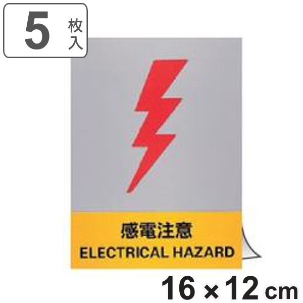 安全標識ステッカー 「 感電注意 」 英文字入り 5枚組 16×12cm ( 標示シール 英語 看板 安全標識 安全 注意喚起 標識 表示 ステッカー シール 標示 作業 安全用品 注意 喚起 安全グッズ 日本語 二カ国語表記 感電 )