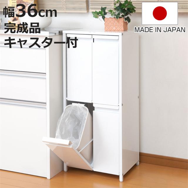 分別ゴミ箱 幅36cm 9リットル4分別 スチール製 ダストボックス キャスター付 ( 分別 ごみ箱 キッチン 資源ごみ すき間 収納 ホワイト 資源ゴミ ゴミ箱 ダストBOX アジャスター付 )