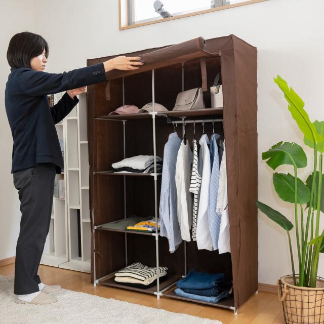 衣類をホコリから守ってスッキリ収納、カバー付きハンガーラック