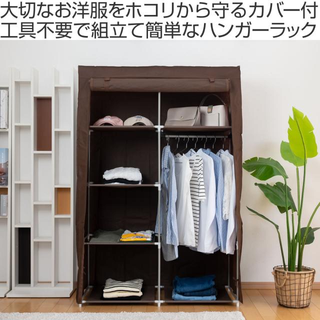 ハンガーラック カバー付 幅105cm 棚有り 工具不要 軽量 ( ワードロープ クローゼット ほこり除け 壁面収納 棚 フルカバー 不織布 収納 収納ラック 衣類収納 コートハンガー 洋服掛け ハンガー パイプハンガー カバー 軽い )
