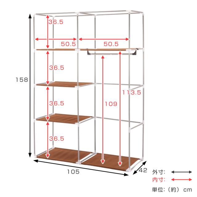 | サイズ | 約 幅105×奥行42×高さ158(cm) 棚1段あたり:約 幅50.5×高さ36.5(cm) 右下段:高さ約113.5cm |