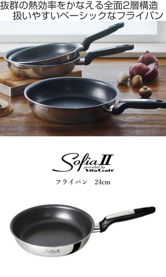 VitaCraft フライパン 24cm IH対応 ソフィア2 No.1744 ( ビタクラフト ガス火対応 オール熱源対応 金属ヘラOK 炒め鍋 ふっ素加工 軽い 24センチ 浅型 フライパン ih対応)