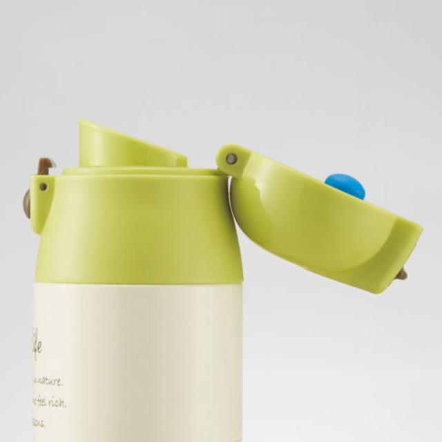 ボタンをワンプッシュするだけで蓋が簡単に開きます。ロック機能付きで持ち運ぶ際も安心です。直飲みタイプでそのまま飲み物を飲むことができます。