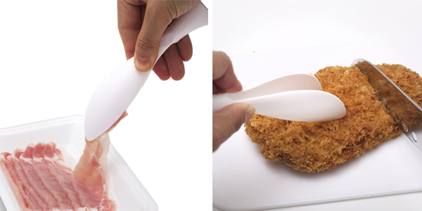 | 手を汚したくない生肉生魚も 生肉、生魚など手を汚したくないものをつかむのに便利!重なり合った薄いお肉やベーコンも器用にはがせます。 | 熱々の料理を切る時も トンカツなど揚げたてを切るときの押さえとして!そのままお皿の盛り付けのトングとしてもお使い頂けます。 |