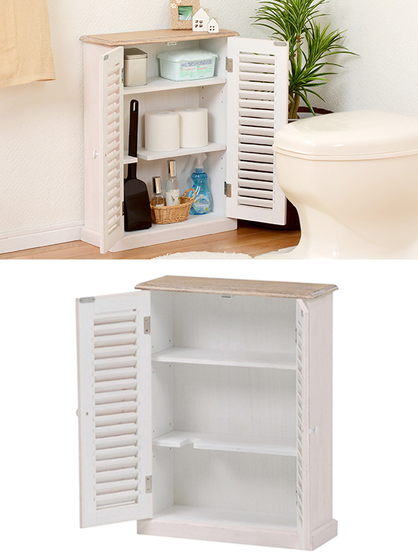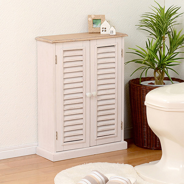 トイレラック ブロカントシリーズ アンティーク調 ホワイトウッド ( 収納ラック 収納 ラック キャビネット 白家具 姫系 ひとり暮らし トイレ収納 サニタリー収納 フレンチカントリー クラシック かわいい おしゃれ )