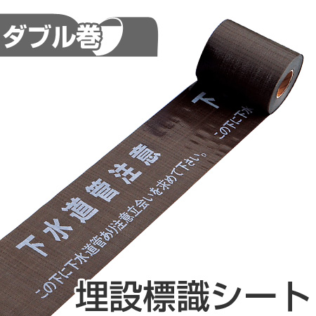 埋設標識シート 「下水道管注意 この下に下水道管あり注意立会いを求めて下さい」 15cm×50mダブル巻 ( 配管 危険表示 テープ )