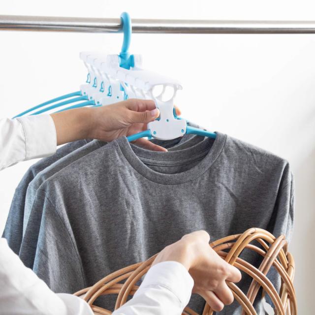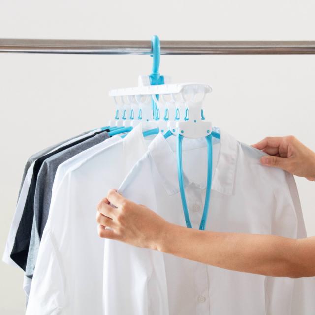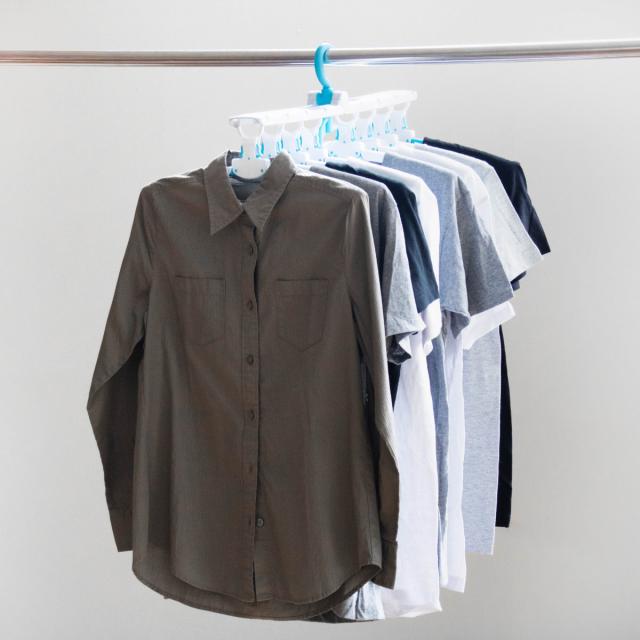 Tシャツ・Yシャツを楽に取り込めるワンタッチ8連ハンガー