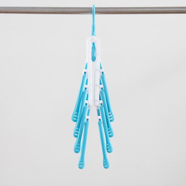 洗濯ハンガー ワンタッチ 8連タイプ ( 連結ハンガー 8連ハンガー 洗濯 取り込み ハンガー 連結 折りたたみ 時短 クリップ付き ブルー )