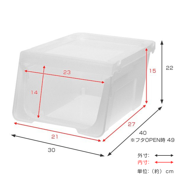 | サイズ | 約 幅30×奥行40×高さ22(cm) 最大開口部:約 幅23×高さ14(cm) |