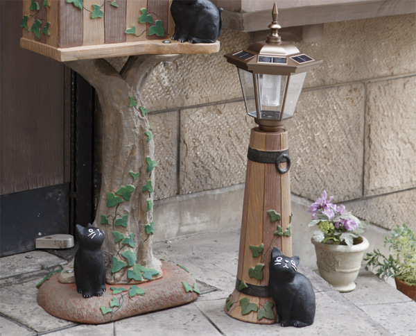ガーデンオーナメント ソーラーライト 猫 バーレル 大 ( オーナメント ガーデンライト エクステリア ライト 置物 飾り ガーデン おしゃれ セトクラフト )