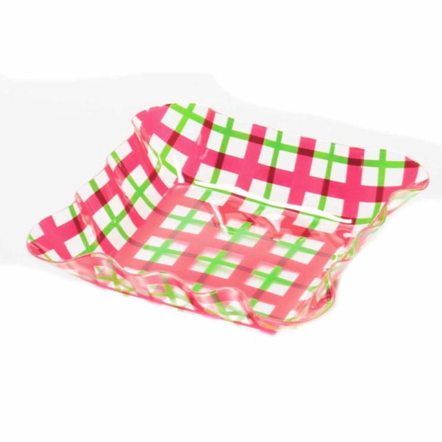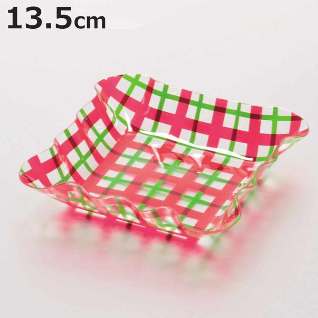 PETスクエアプレート チェック アレンジDECO ( プレート お皿 菓子皿 スナックプレート 小物入れ 軽い 割れにくい 柄 軽食 スナック おやつ お菓子 透明感 おしゃれ チェック柄 )