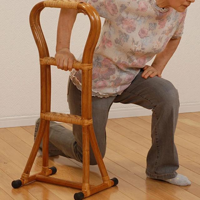 てすり 立ち上がり 補助 立ち上がりステッキ ラタン製 高さ80cm ( 手すり 補助手すり 籐 ステッキ つかまり立ち サポート 負担軽減 介護 介護用 立ち上がり補助 3段階 軽量 安定感 すべり止め おしゃれ )
