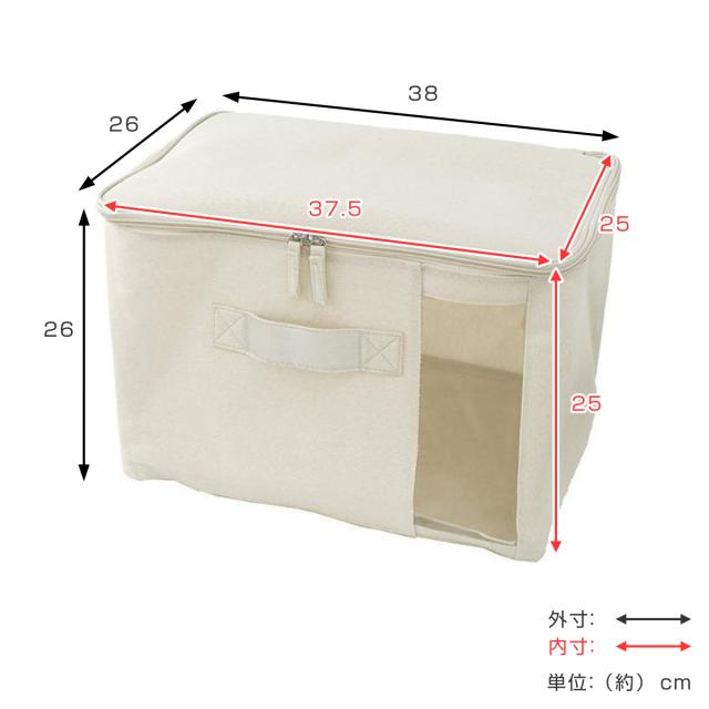 《 LH15437 衣類収納ボックス 衣類収納袋 衣類ケース 衣類整理 片付け 仕分け オモチャ箱 おもちゃ箱 オモチャ入れ おもちゃ入れ おもちゃ収納 オモチャ 玩具 おもちゃ 洋服 タオル ニット セーター 寝具 かばん カバン 鞄 バッグ 帽子 棚 ファスナー付き 約 幅40 奥行25 高さ25 cm センチ アイボリー ホワイト 白 ベージュ 》
