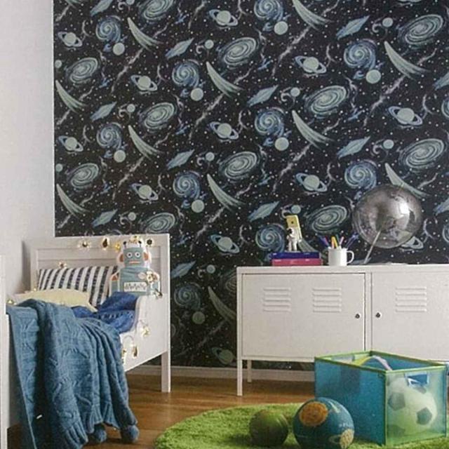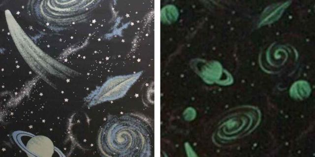 のりを塗らずに簡単に貼れて 暗闇で光るお洒落な壁紙