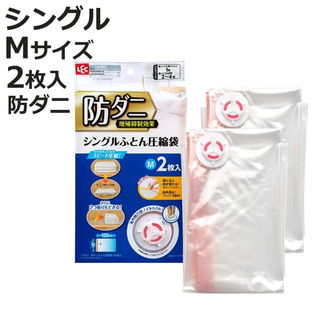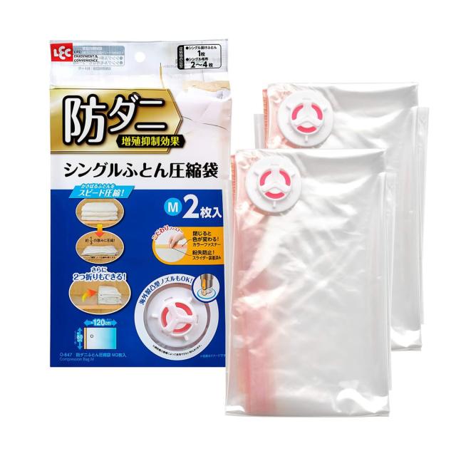 布団圧縮袋 防ダニ シングルふとん用圧縮袋 M 2枚入 自動ロック式 ( 掛け布団 シングル ふとん圧縮袋 布団収納 毛布 圧縮袋 布団 収納 2つ折り コンパクト 収納袋 押入れ収納 海外製掃除機対応 クローゼット 掃除機 )