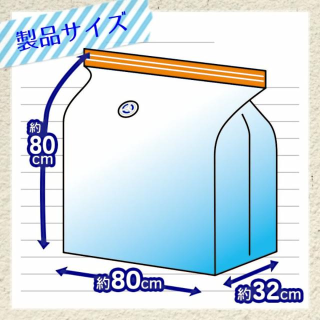 衣類用の圧縮袋です。衣類を約1/3に圧縮してスッキリ収納でき、マチ付きで使いやすく、クローゼット用プラスチックケースにすっきり収まるサイズです。