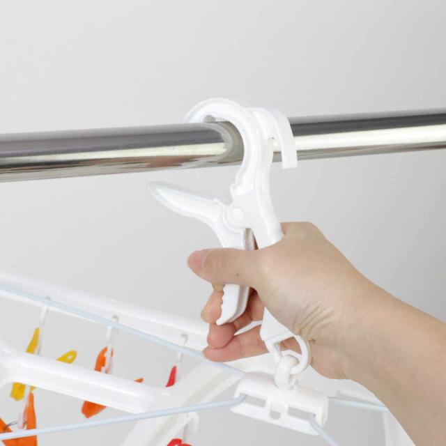 物干し竿をしっかりつかむキャッチフック式なので、風が強い日の外干しの際も安心です。洗濯物を取り込む際もつかむだけで簡単に取り込むことができます。
