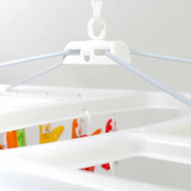 キャッチ部にはカモイフックが付いているので、カモイに掛けて部屋干しでも活躍します。