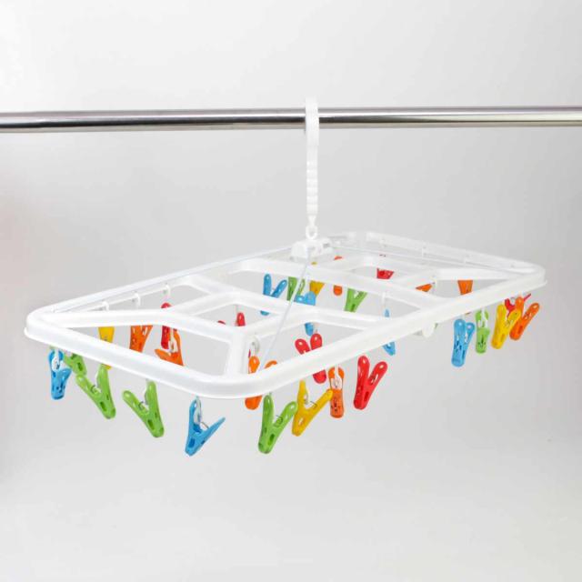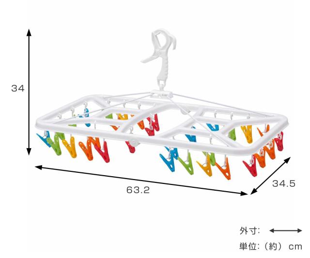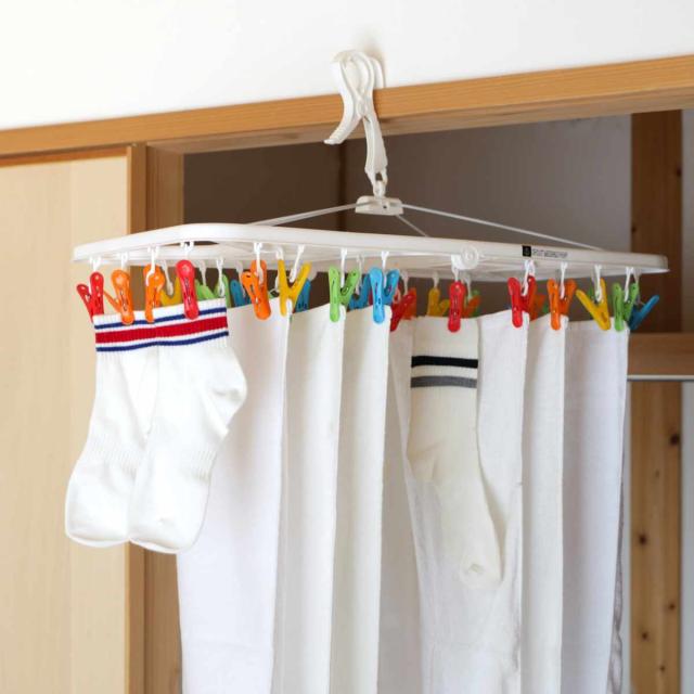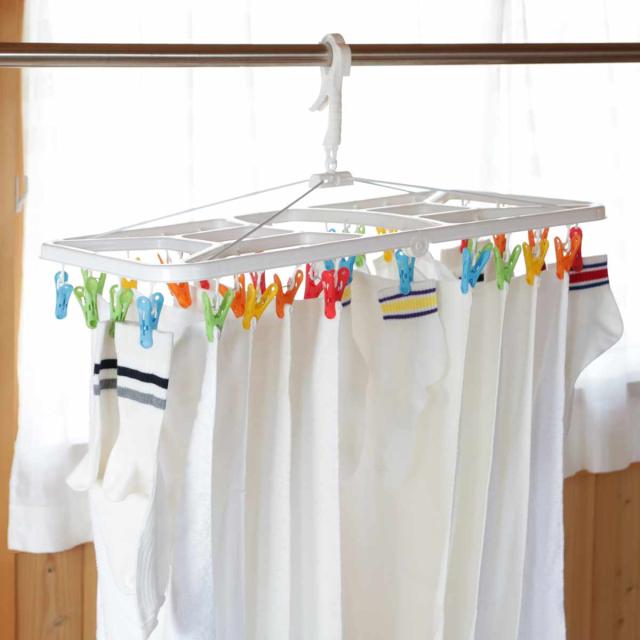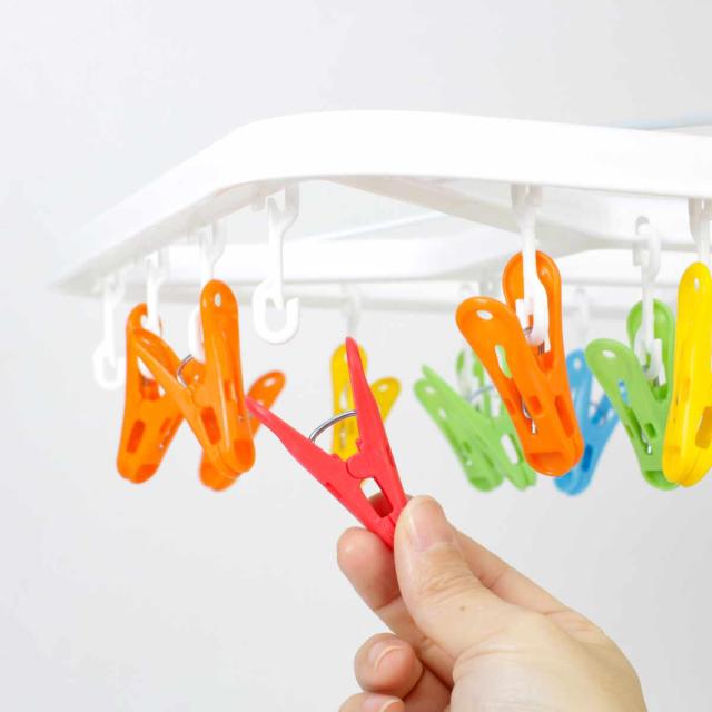 毎日のお洗濯が楽しくなるカラフルピンチの角ハンガー 32ピンチ