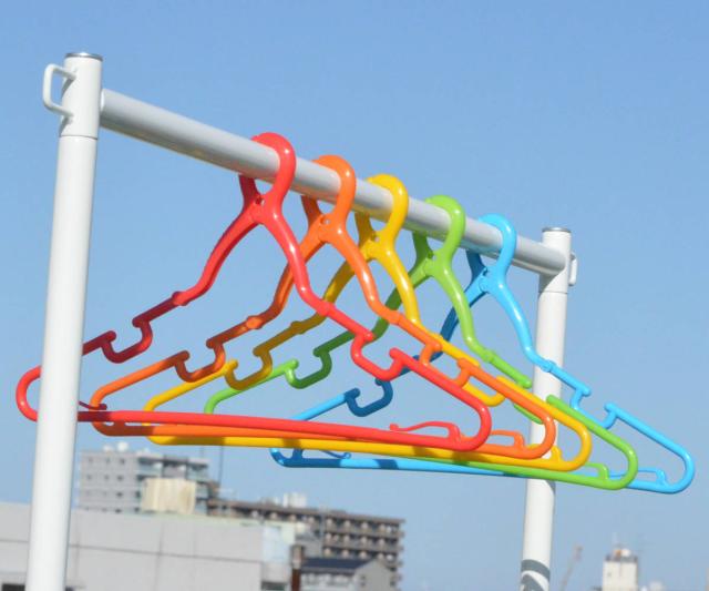 竿をしっかりつかむ!カラフルな洗濯ハンガー