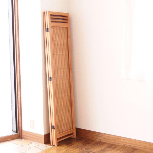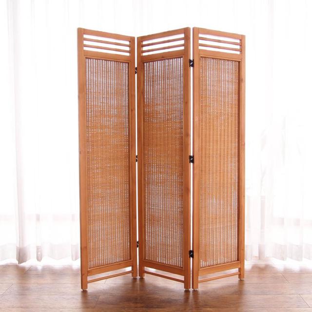 天然木のフレームにラタンの編み込みが美しいスクリーン 3連