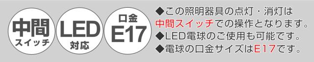 | 備考 | 器具仕様:E17-25W(最大25Wまで) スイッチ:中間スイッチ コード長:約1.5m 25W白熱球付属 LED・白熱電球・電球型蛍光灯使用可能 ※天然素材を使用しているため、写真とは色・サイズ・形等が多少異なる場合があります。 |